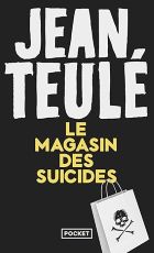 Dans un vingt-deuxième siècle marqué par le déclin d’une humanité autrefois florissante, dans un monde pollué à l’atmosphère devenue irrespirable, le Magasin des Suicides offre des solutions satisfaisantes pour quiconque souhaite passer rapidement de vie à trépas. Lucrèce et Mishima, en compagnie de leur fille Marilyn et de leur fils Vincent, tous porteurs de prénoms rendant hommage à de célèbres suicidés, rivalisent de zèle pour proposer poisons, cordes pour se pendre, pavés de béton et autres friandises à une clientèle avide de quitter le plus rapidement possible ce monde devenu inhabitable. Hélas, dans la famille Tuvache, le dernier rejeton, Alan (comme Alan Turing) n’a pas hérité des gènes parentaux et s’ingénie à apporter la joie de vivre au sein de la boutique, au grand dam de ses parents et de sa fratrie qui n’attendent que le meilleur moment pour s’en débarrasser. Fort heureusement les choses ne vont pas en rester là et vont finir par tourner à l’avantage du joyeux fiston. Un roman loufoque, bien dans l’esprit de la BD, genre dans lequel Jean Teulé a excellé, qui ravira les amateurs de littérature décalée. Sous la farce macabre, un message d’espérance et d’amour tout de même…