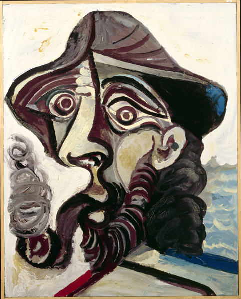 "Le Fumeur" de Picasso, en matière d'existence, de sexualité, nous entraîne encore bien au-delà de la proposition ombreuse cézanienne. Là se dessinent, en filigrane de l'œuvre, d'une façon subliminale, les angoisses dernières de l'artiste. Là le "Vieux sauvage" vit la dernière "période", sans doute aurait-il fallu la nommer "période noire", celle qui, deux ans plus tard, signera l'épilogue du génie de Malaga. Sous le chapeau cerné de coulures bitumeuses, alors que le regard semble entièrement occupé à une vision anticipatrice de la Mort elle-même, que le blanc de titane prend des teintes cadavériques, que la barbe n'est plus qu'une vague broussaille envahie d'ennui, ne sort du fourneau de la pipe que le nuage d'un dernier feu, pareillement au sémaphore qui, le long de la côte, prévenait du danger. Voici le moment venu des dernières banderilles, le Minotaure est vaincu. Dans l'arène envahie d'ombre retentissent déjà les cris ultimes de la mise à mort. Le fougueux amant de l'art, des conquêtes féminines multiples, n'est plus qu'une braise qui s'éteint, à peine une étincelle dans la ténèbre proche. Bientôt l'éternelle cigarette de l'artiste cèdera la place à la dernière encre, au dernier lavis. Ainsi se clôt une existence : une cigarette qui s'éteint.